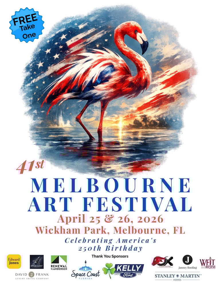 Join us for the 41st Melbourne Art Festival, a vibrant celebration of fine art, Jewelry, music, and community around the back lake at Wickham Park, happening April 25 & 26, 2026.